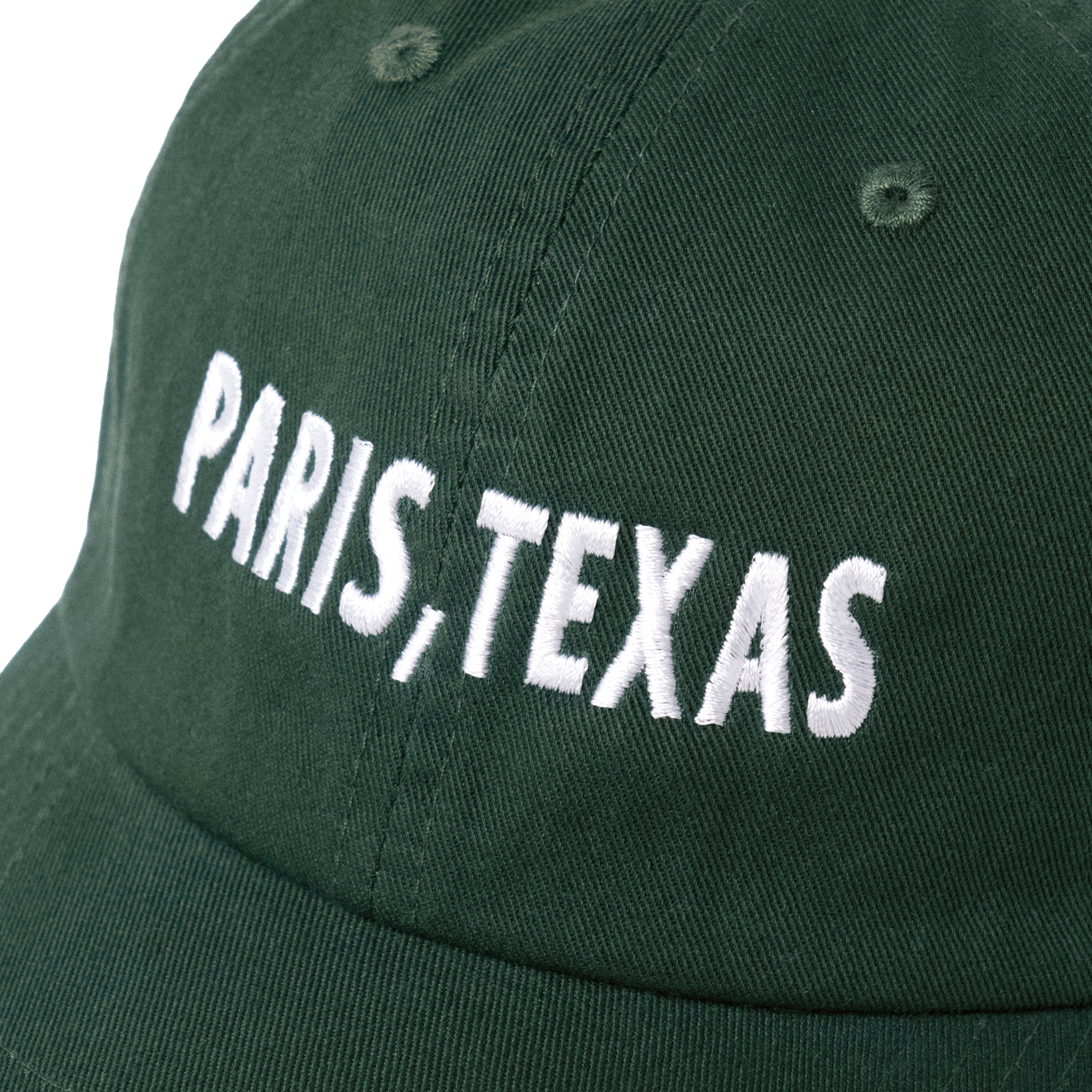 フロントに"PARIS, TEXAS"の文字を刺繍した、6パネルキャップ。